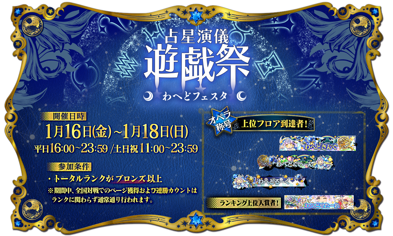 ・順位による褒賞(称号含む)は、占星演儀・遊戯祭の終了後を予定しております。