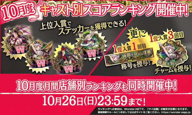 10月度『全国キャスト別スコアランキング』と『月間店舗別ランキング』開催のお知らせをいたします。